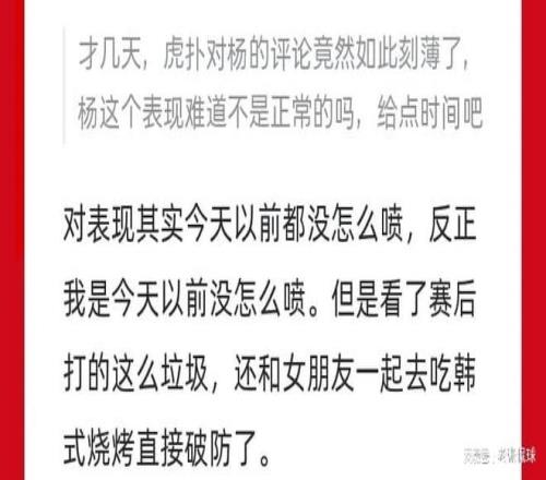 我:小杨这个竞争环境已经非常良好了,如果在这种摆烂队都拿不到上场时间,很可能快速被NBA放弃