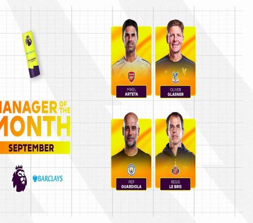 雷速体育10月2日报道宣称 英超官方公布了九月最佳教练候选,瓜迪奥拉、阿尔特塔、格拉斯纳和桑德兰主帅勒布里理入围。阿尔特塔(阿森纳):2胜1平、净胜球+4阿尔特塔的阿森纳在九
